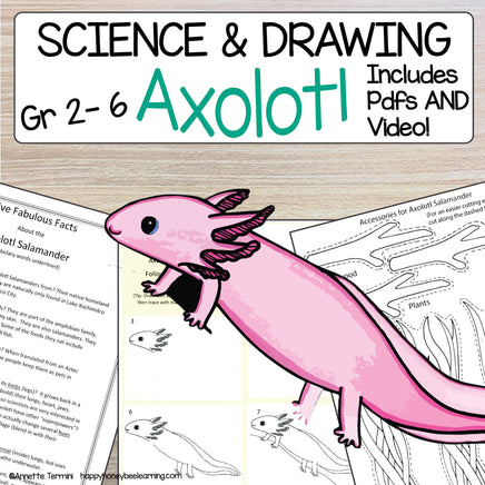Make your child's day with this axolotl directed drawing lesson! Includes awesome animal science facts about the axolotl, including its classification and habitat. NO PREP directed drawing and science lesson is great for classrooms, homeschool and parties!